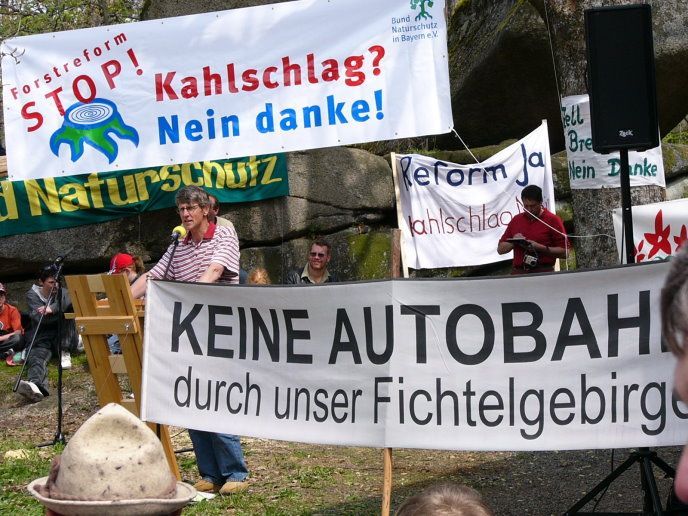 Mit dem Projekt "B 303 neu", sprich Fichtelgebirgsautobahn, musste sich Karl Paulus beruflich 25 Jahre auseinandersetzen. Es begann mit der Organisation einer Mahnfeuerkette am 01.11.1984, kulminierte in spektakulären Kundgebungen auf dem Waldstein 2001 bis 2009 und endete mit dem Aus für die Autobahn durch Innenminister Herrmann am 30.03.2009.