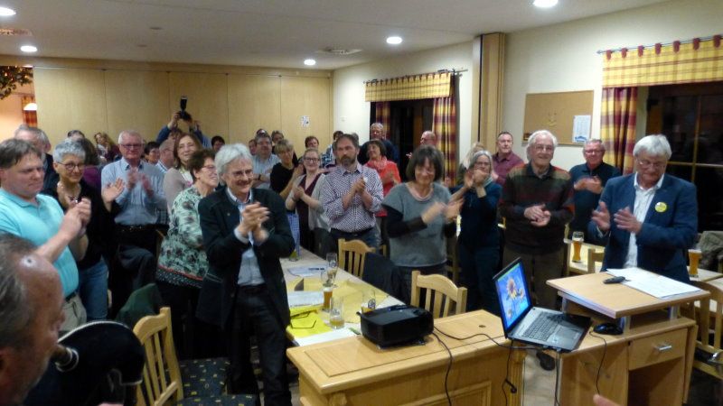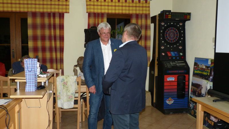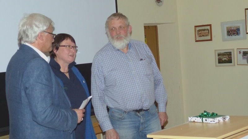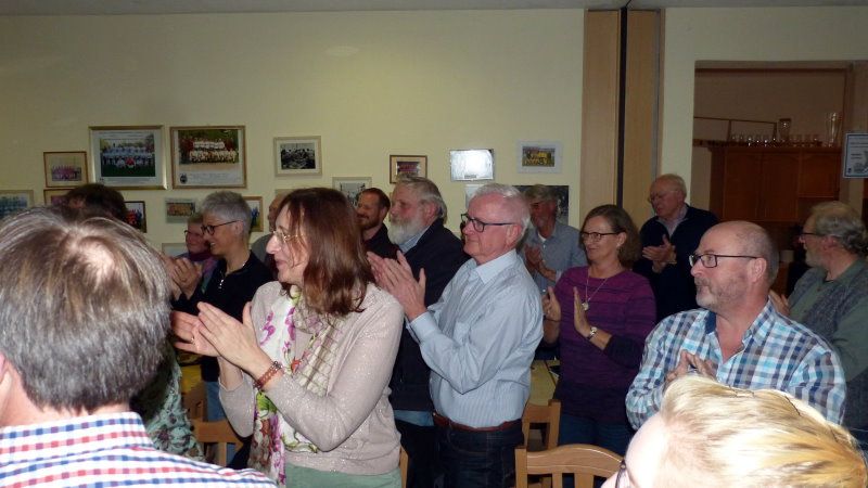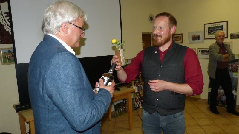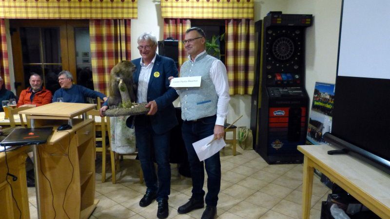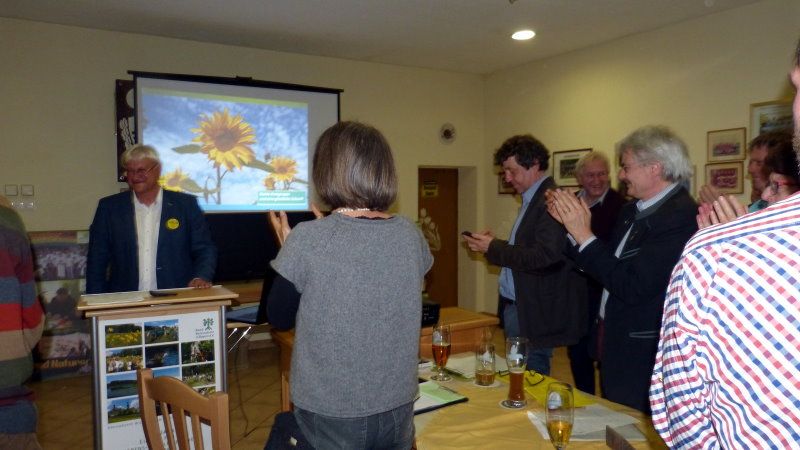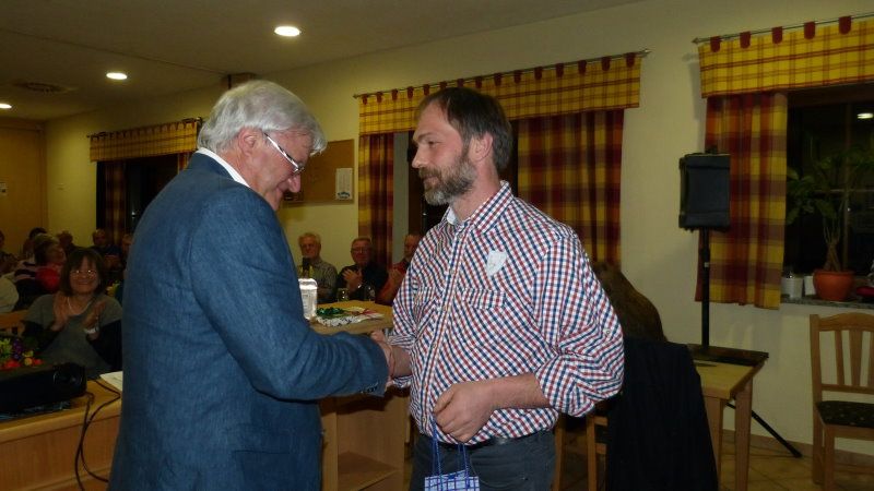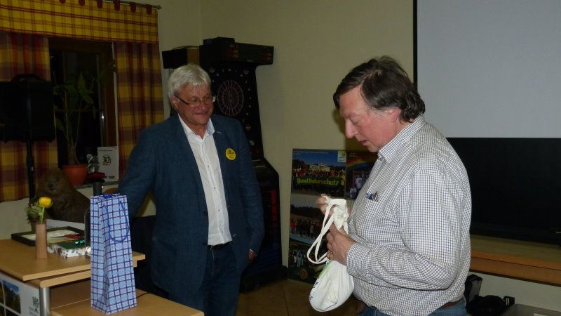 All diese Dinge brachte dann Fred Terporten-Löhner bei der Übergabe des Kreisgruppengeschenkes auf den Punkt. Am Beispiel eines präparierten Bibers „Castor paulus maximus“, dieses genialen Landschaftsgestalters hob er mit launigen Worten Karls Vorzüge hervor: feine Ohren, gute Augen, dickes Fell, Übersicht und, und, und …