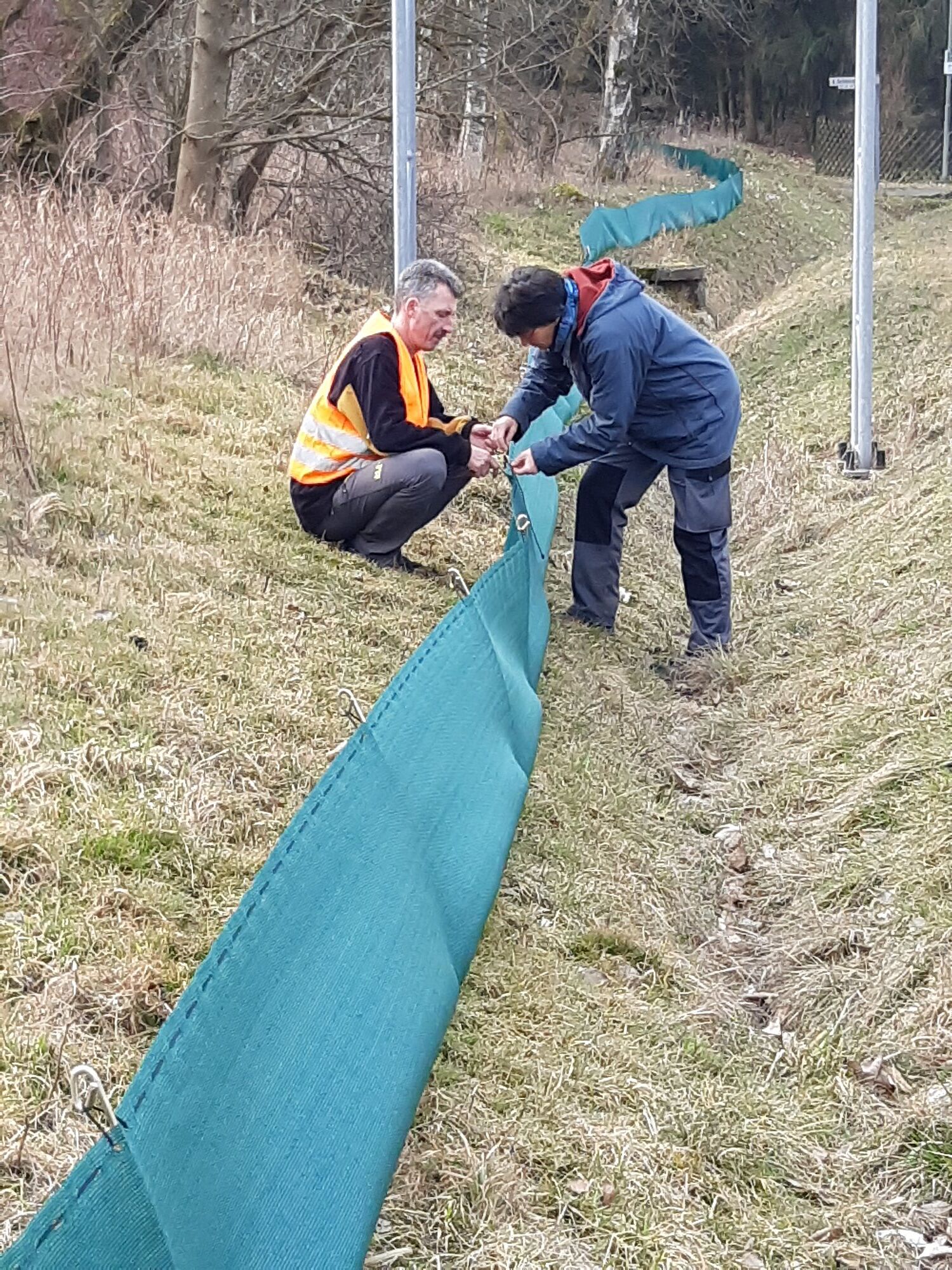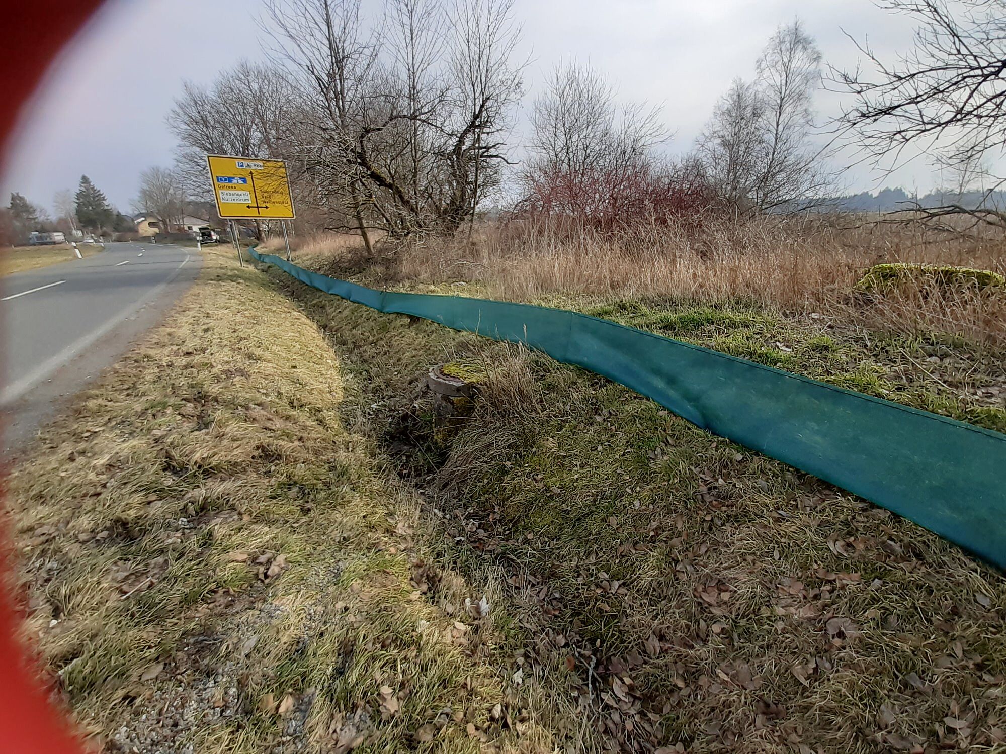 Auf Initiative von Pfarrer Thomas Schmidt, dem Schmidtn Pfoarer, errichtet die OG Weißenstadt insgesamt 400m Amphibien-Schutzzäune.