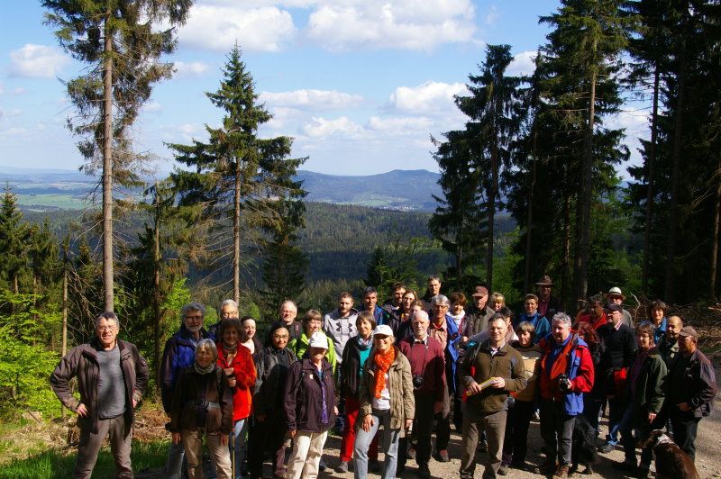 Über den Wanderweg 3 bestieg die Gruppe den Osthang des Schneeberges und erhielt zahlreiche Informationen über die verschiedenen Waldgesellschaften wie den Bergmischwald oder die ortstypischen Moorwälder mit ausgewachsenen Spirken, die nur noch sehr selten in dieser Größe anzutreffen sind.