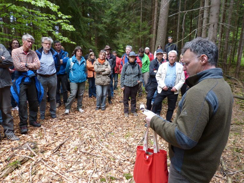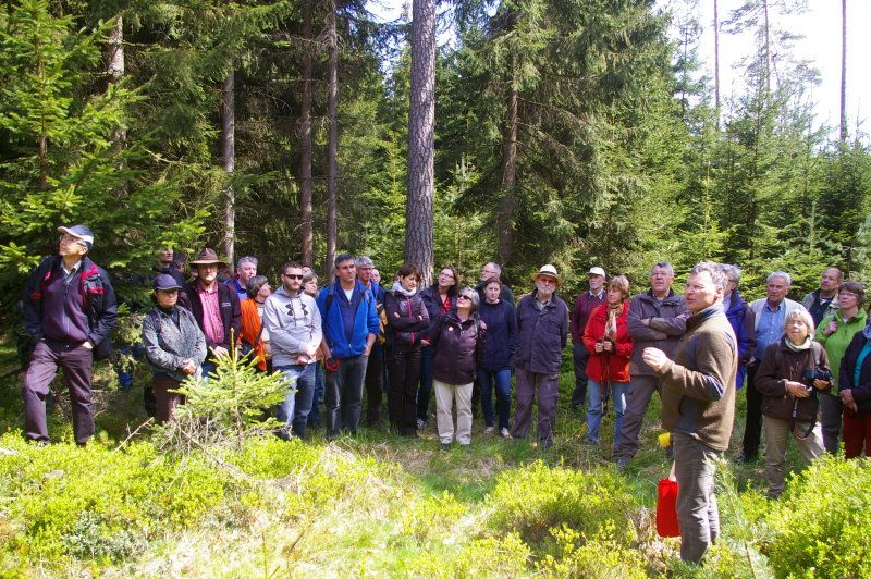 Im Fokus standen das ausgewiesene Flora- und Fauna- Habitatgebiet (FFH) Schneeberg und seine Waldgesellschaften. BN Kreisvorsitzender Fred Terpoten-Löhner und leitender Mitarbeiter der Bayerischen Staatsforsten am Forstbetrieb Selb, erklärte den Teilnehmern die ökologischen Zusammenhänge am und um den höchsten Berg Frankens.