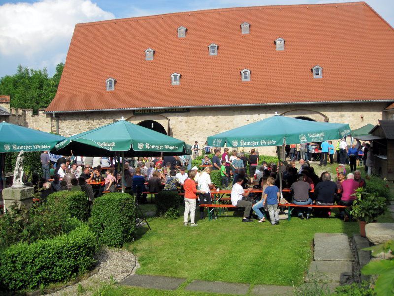 Der gesamte Schlosshof mutierte zum Wohlfühlpaket für Gäste und Veranstalter. Die Umstellung vom Samstag auf den Sonntag hat sich bewährt. Schon vor 14 Uhr, dem offiziellen Beginn, fanden sich die ersten Gäste ein, obwohl ein bedeckter Himmel und auch einige Regenschauer nichts Gutes versprachen. Wenn Engel feiern bleibt das aber nicht so und kurz danach strahlte die Sonne und bescherte den BN-lern ein fröhliches Fest bis in die Abendstunden.