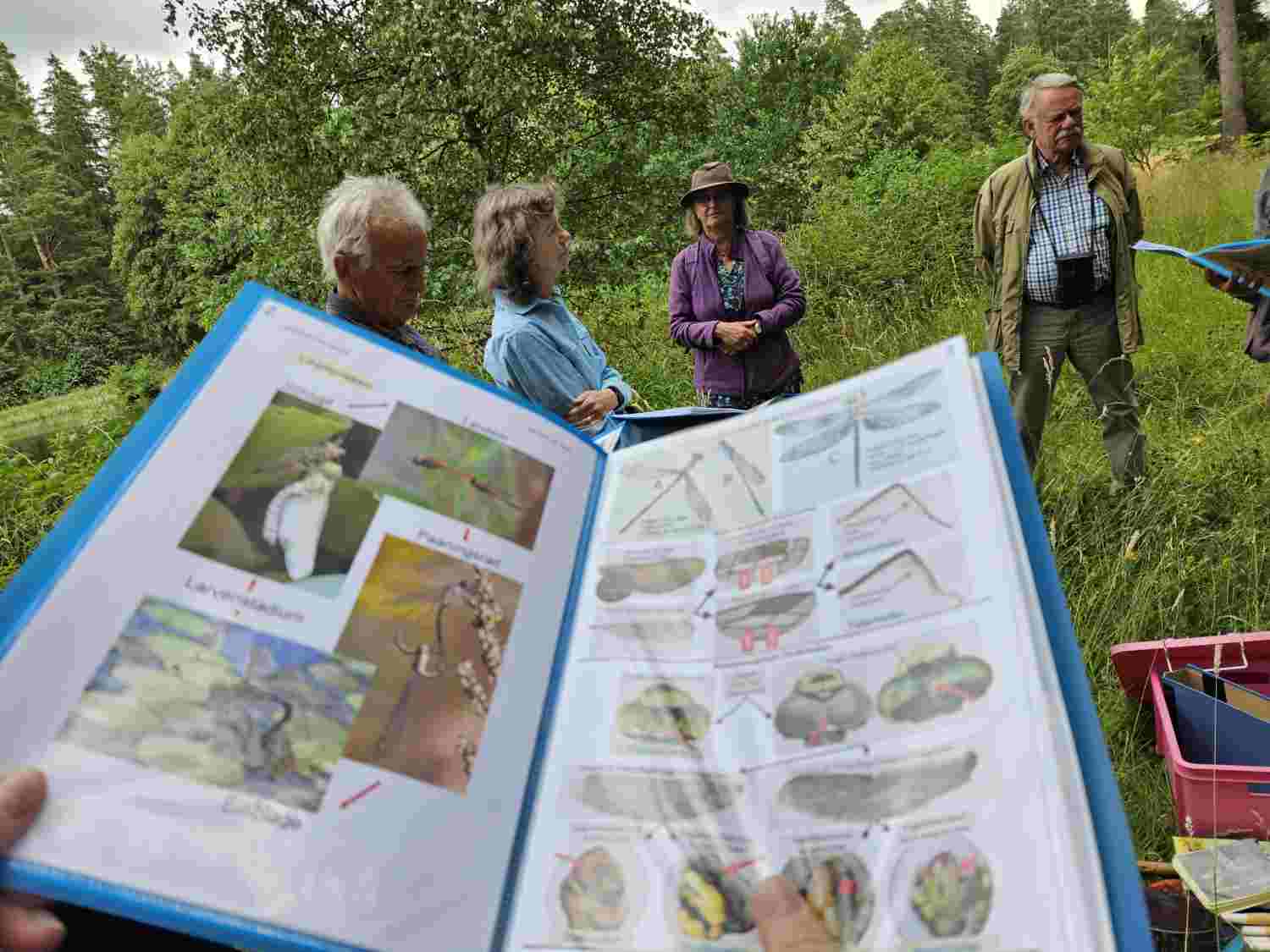 Am Exkursionstag konnten die Teilnehmer neben zehn Libellenarten, unter anderem, auch Goldschrecken, gebänderte Jagdspinnen, sowie eine Nadelholzsäbelschrecke, aus nächster Nähe bewundern – ein gelungener Ausflug in die Welt der Insekten und Spinnen!