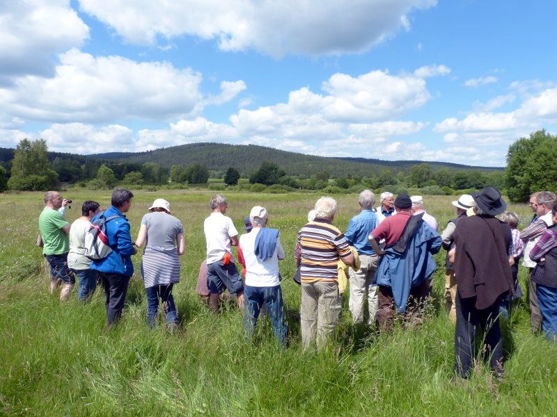 Rund dreißig Teilnehmer genossen bei herrlichstem Sommerwetter und blau-weißem Himmel die urwüchsige Natur. An geeigneten Stellen vermittelte Karl Paulus Hintergrundwissen und machte auf viele Pflanzenarten aufmerksam, die im Fichtelgebirge nur noch auf geschützten Feuchtflächen und Brachen zu finden sind.