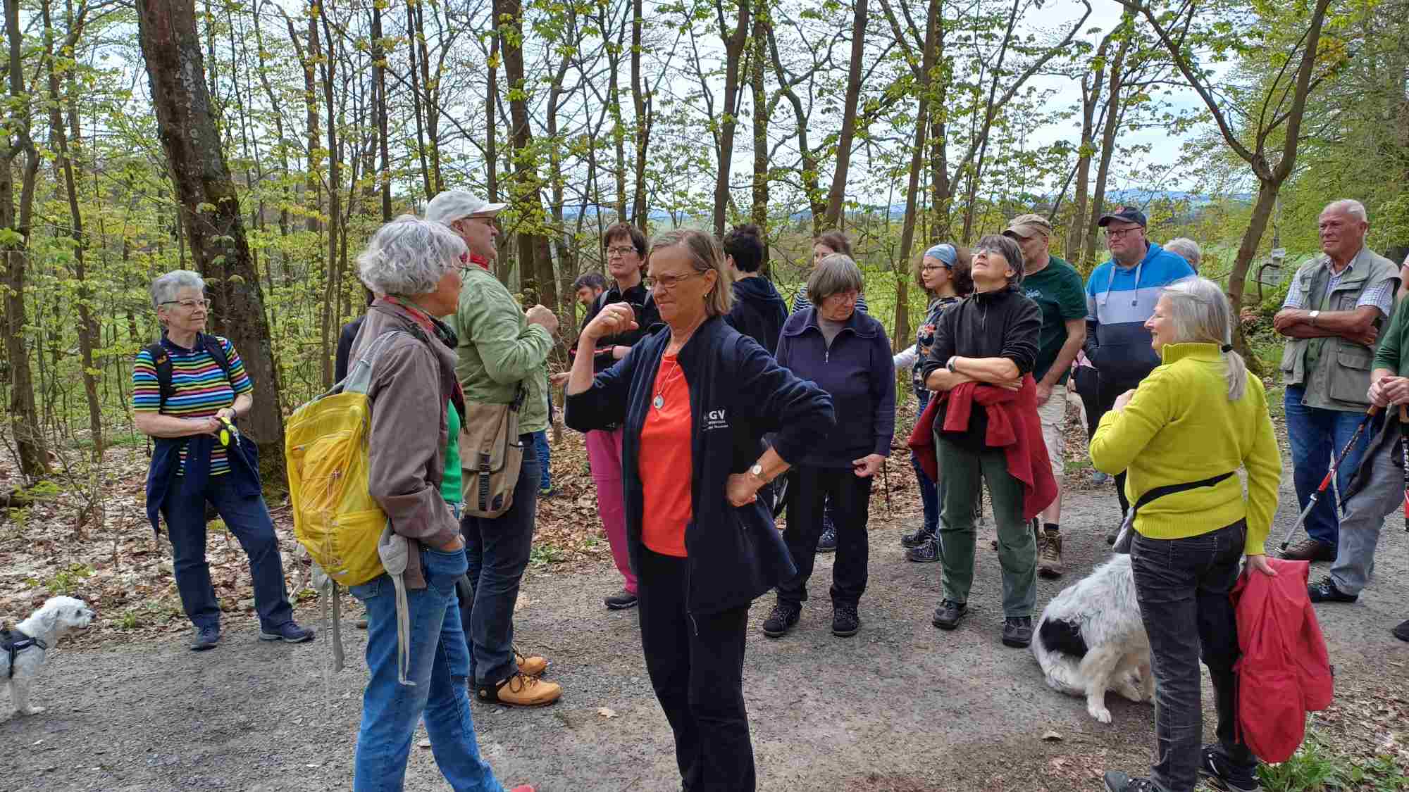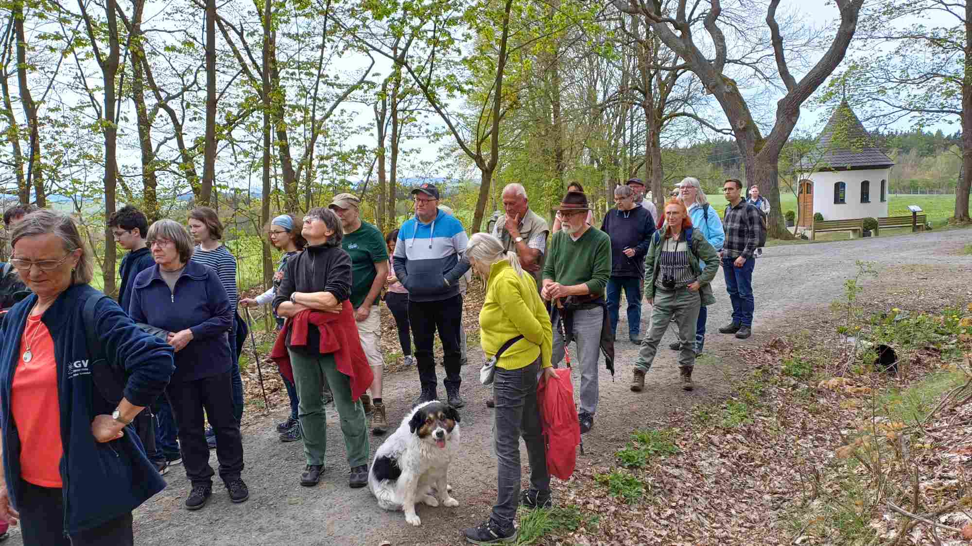 Annähernd 40 Teilnehmer waren sehr interessierte Mitwanderer durch den schon frühlinghaften Mischwald, der sich vielfältig zeigte, ebenso wie die Wandergruppe. Vom Kleinkind bis zu betagten Senioren war jede Altersgruppe vertreten. Für die Kleinen hielt das Laub vom Herbst so manche Überraschung bereit und für die Jugend und Erwachsenen hatte Fred Terporten-Löhner viele Details bereit, die nicht jedem bekannt gewesen sein dürften.