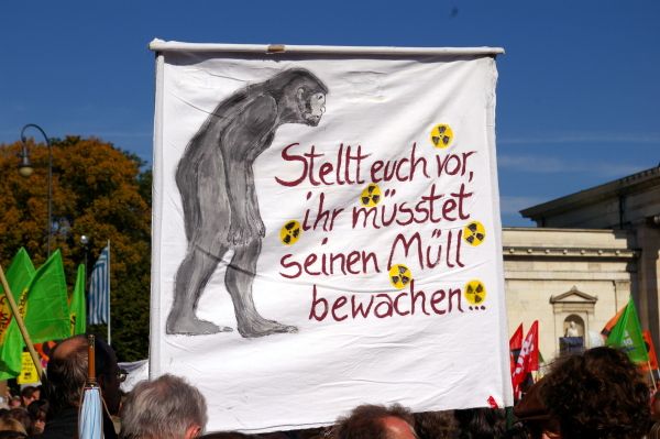 In einer mitreißenden Rede geißelte der Landesvorsitzende des Bundes Naturschutz, Professor Hubert Weiger die „unsägliche Atom- und Energiepolitik in unserem Land“. Es sei in höchstem Maße unverantwortlich, wenn durch die Laufzeitverlängerung der Kernkraftwerke Tausende von Tonnen hochradioaktiver Müll mehr produziert werde, obwohl weltweit noch kein einziges Gramm sicher endgelagert worden sei. Das Wort „unverantwortlich“ zog sich wie ein roter Faden durch seine Rede. Scharf kritisierte der BN-Chef die „Nachhaltigkeitsrhetorik“ der Regierenden. „Sie reden von Nachhaltigkeit, dabei werde hochgefährlicher Atommüll produziert, der für gut 6000 künftige Generationen eine gefährliche Hypothek darstellt.“ Hubert Weiger fand deutliche Worte. „Die Gier der Großbanken war immens. Doch noch grenzenloser ist die Gier der Atomkonzerne.“ Bei einem großen radioaktiven Unfall, wie zum Beispiel im Atomkraftwerk Isar1 könnten weite Teile Bayerns unbewohnbar werden, warnte Weiger.