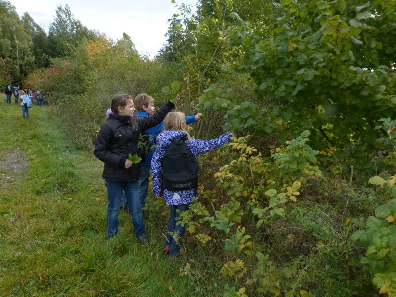 An Hand von Zweigen, Früchten und Blättern mussten dazugehörende Sträucher und Bäume gefunden werden. Das Leben von Bienen und Wespen wurde besprochen und auch die Naturheilbehandlung ihrer Stiche mit Breit- und Spitzwegerich.