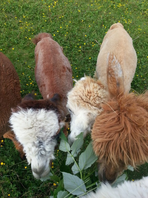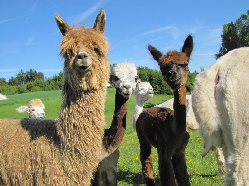 Alpakawolle, Produkte aus Alpaka, wie Mützen, Handschuhe usw., aber auch Bettdecken mit Alpakaflies gefüllt.