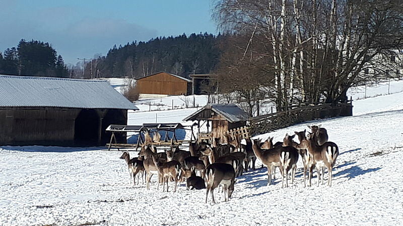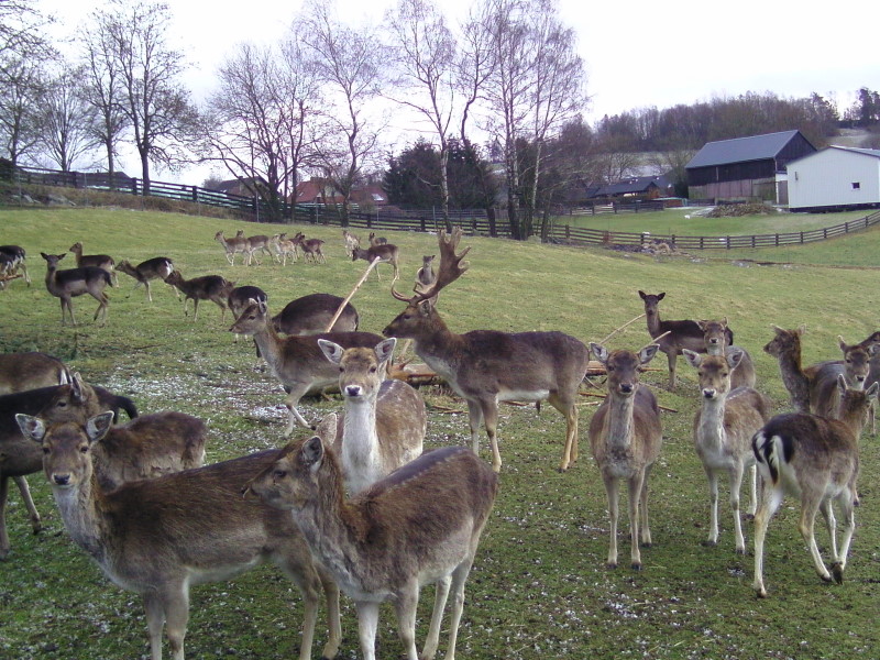 Wir sind ein kleiner Nebenerwerbsbetrieb und betreiben ein Damwildgehege mit ca. 60 Tieren im Sommer und ca. 40 Tieren im Winter. Geschlachtet wird nur im Herbst, im eigenen EU zugelassenen Schlachthaus. Bestellungen übers Jahr.