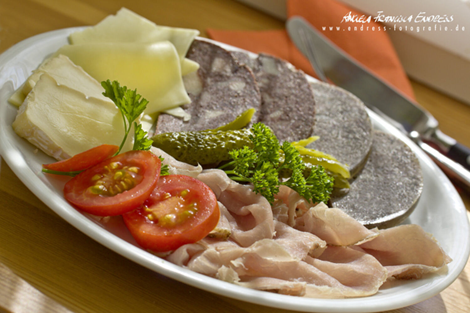 U.a.: von unseren Weiderindern: Roulade, Rinder-, Kalbsbraten mit Knödel und Blaukraut, Strohschweinbraten,… - Torten und Kuchen mit Dinkelmehl, sowie hausgemachte Brotzeiten mit selbstgebackenem Roggenbrot (auf Vorbestellung auch Direktverkauf möglich)